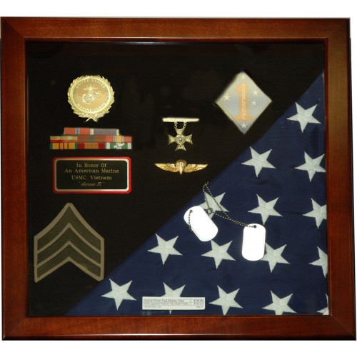 Cherry Finish Flag Display Case