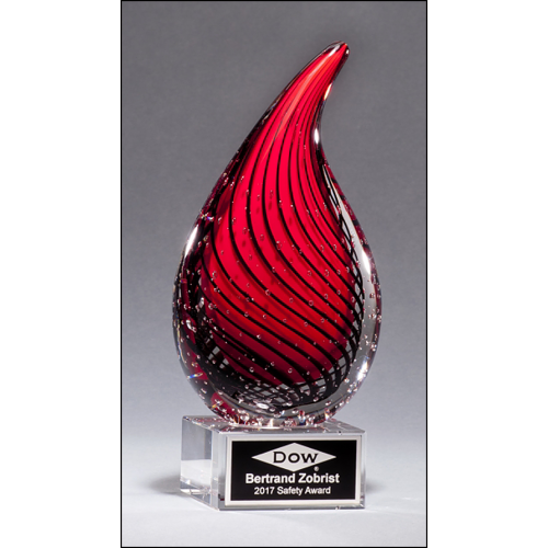 This unique, hand blown, black and red glass award shaped as a droplet is sure to make its recipient feel special!