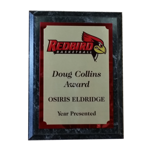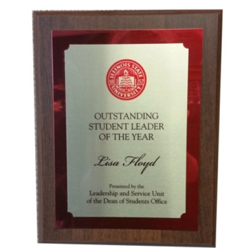 This is a 7" x 9" walnut plaque with a 3 1/2" x 5 1/8" clear plexi and imprinted plate. Price i..