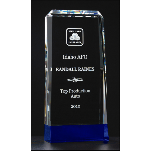 Clear Crystal Award with Cobalt Base