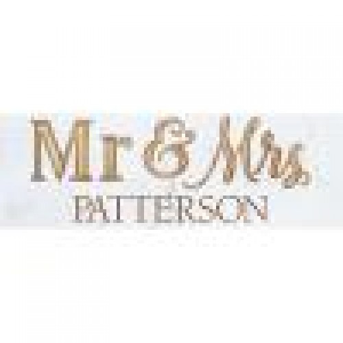 This is a white wooden sign carved with "Mr & Mrs"; a perfect wedding/anniversary gift.