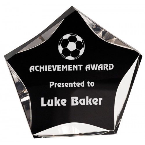 This piece is a black acrylic with a shooting star carved in the back of award. Measures as 4" wide ..