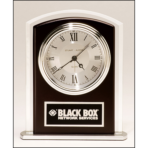Tags: Clock, Glass, Wood, Black, Desk, Award, Appreciation, Recognition, Retirement