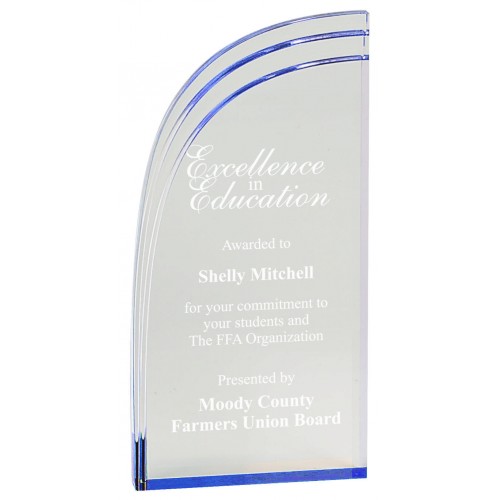 This award is a free-standing, blue acrylic shaped as a wave.