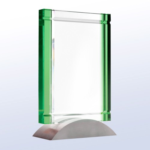 Tags: Art Deco, rectangle, award, recognition, achievement, green, aluminum base, crystal, achievement, award, appreciation, corporate