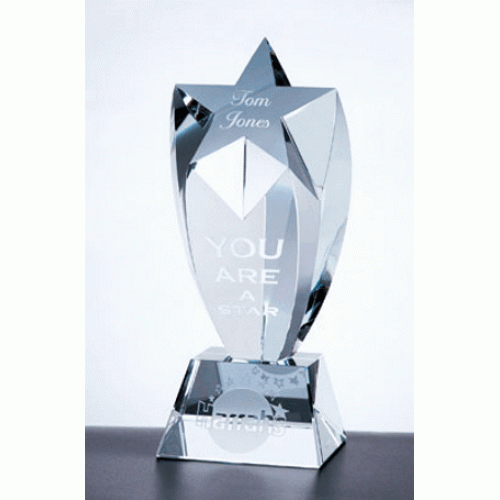 This award is a clear crystal star on top of a black base.Measures as 3" wide x 10" tall.Price inclu..