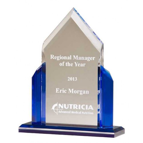This award is a clear acrylic with blue accents from the Peak Series.