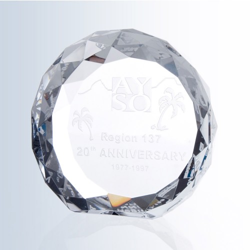This is gem cut circle crystal paperweight.