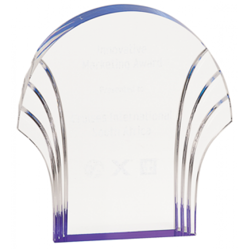 This award is a clear, marquis acrylic with a red acrylic base.Measures as 6" wide x 8" tall.Price i..